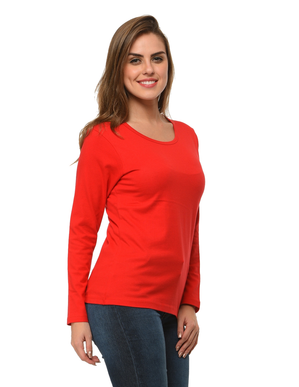 Frenchtrendz 100% Cotton Red Solid Everyday Basic Top