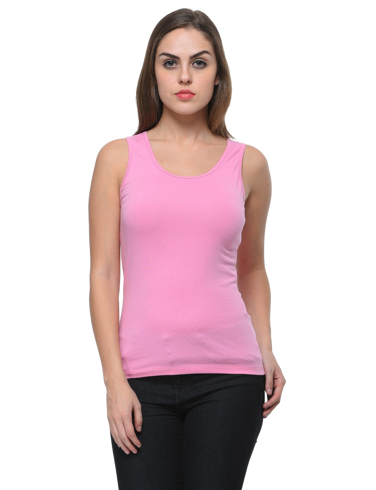 Frenchtrendz Medium Length Cotton Spandex Baby Pink Tank Tops