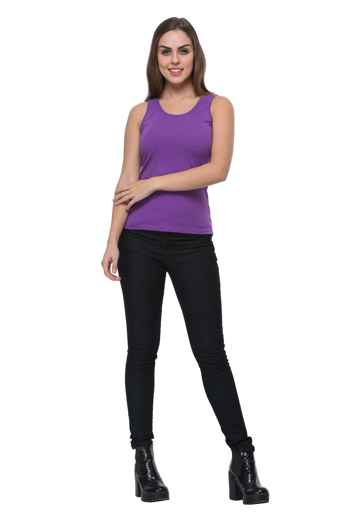 Frenchtrendz Medium Length Cotton Spandex Purple Tank Tops