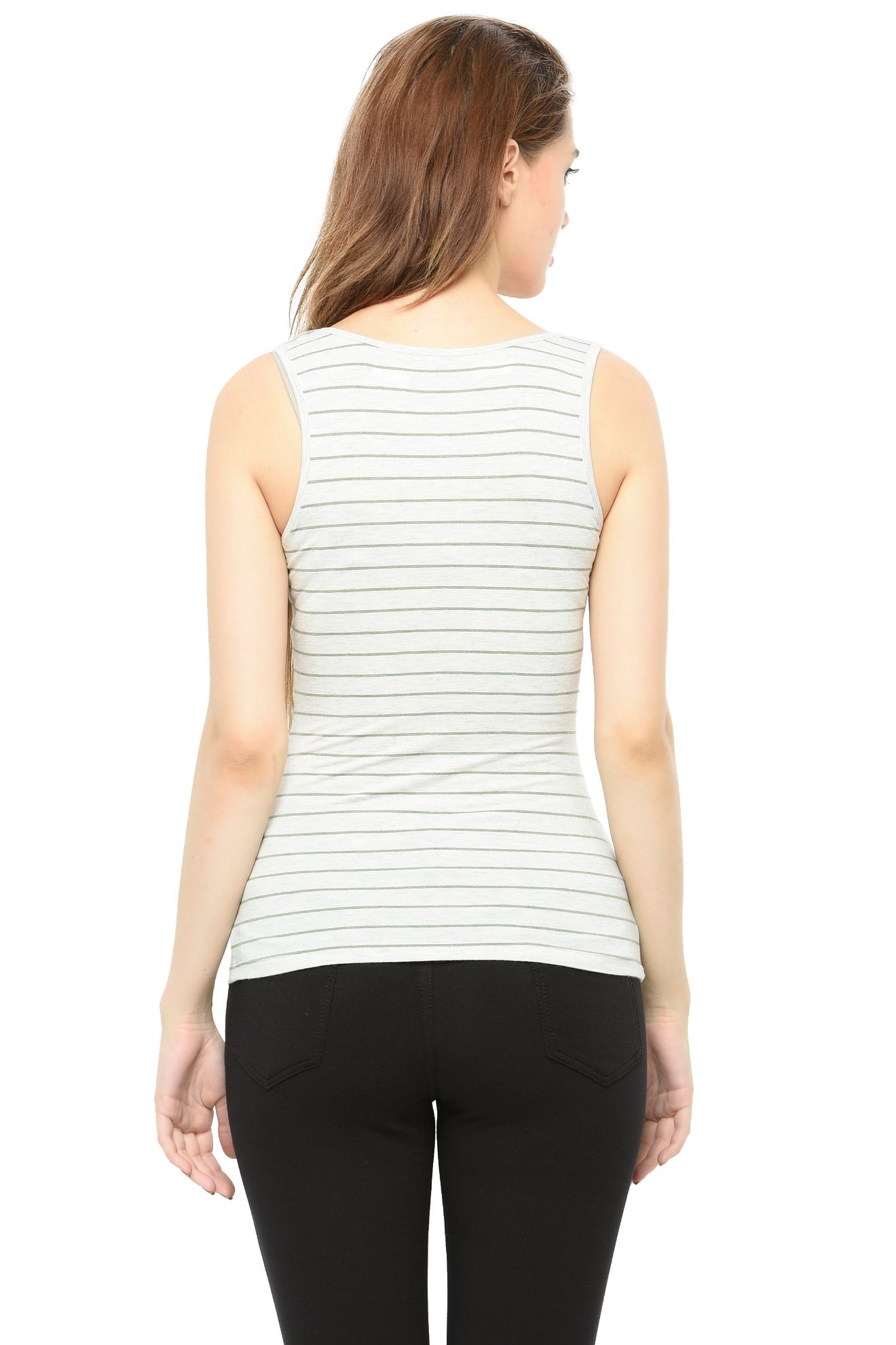 Frenchtrendz Viscose Spandex Grey Green Medium Length Tank Tops