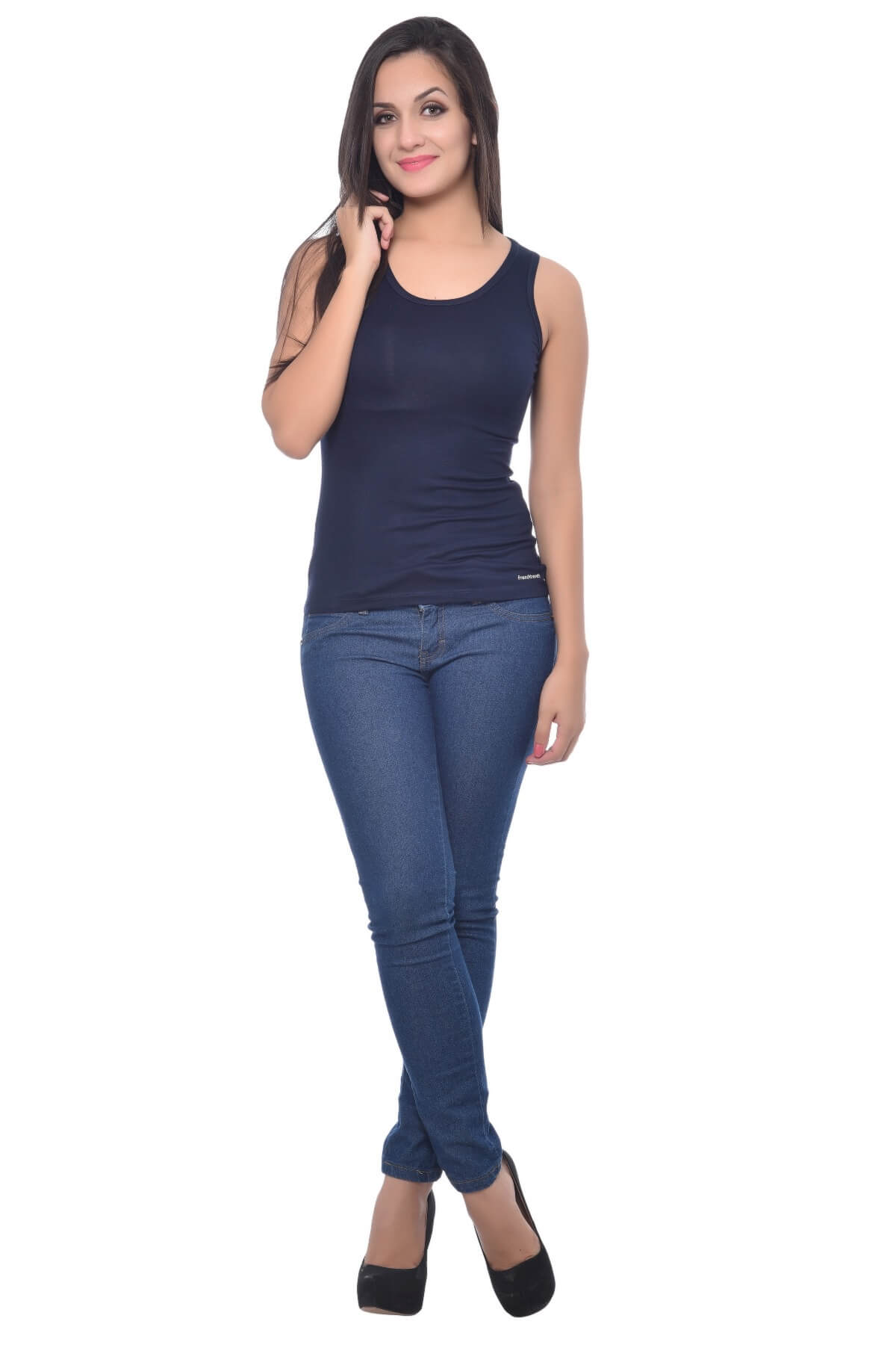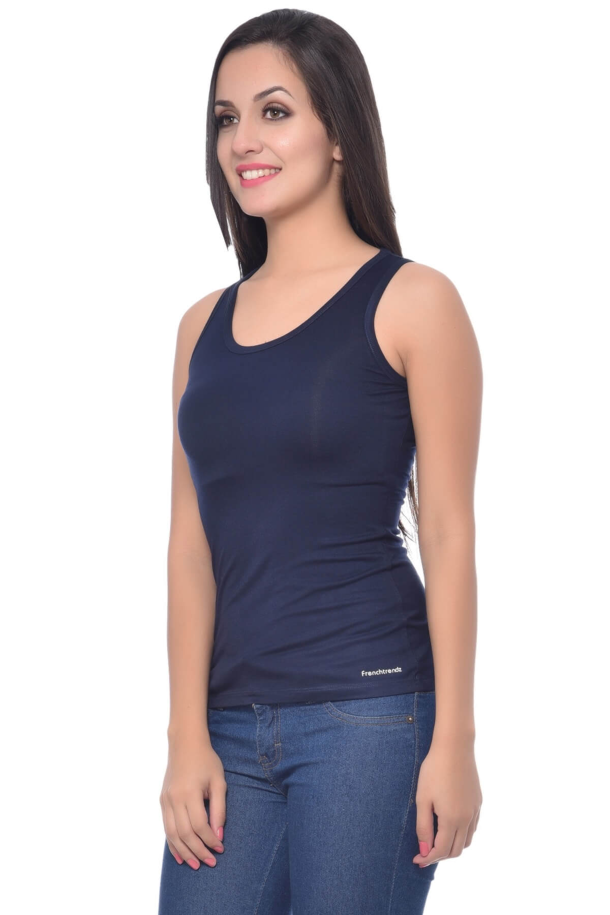 Stay stylish and comfortable in this medium-length navy blue tank tops by Frenchtrendz, crafted from a soft, stretchy blend of 95% Viscose and 5% Spandex. Designed for all-day wear, it combines breathability with a flattering slim fit โ perfect for layering or wearing solo.
