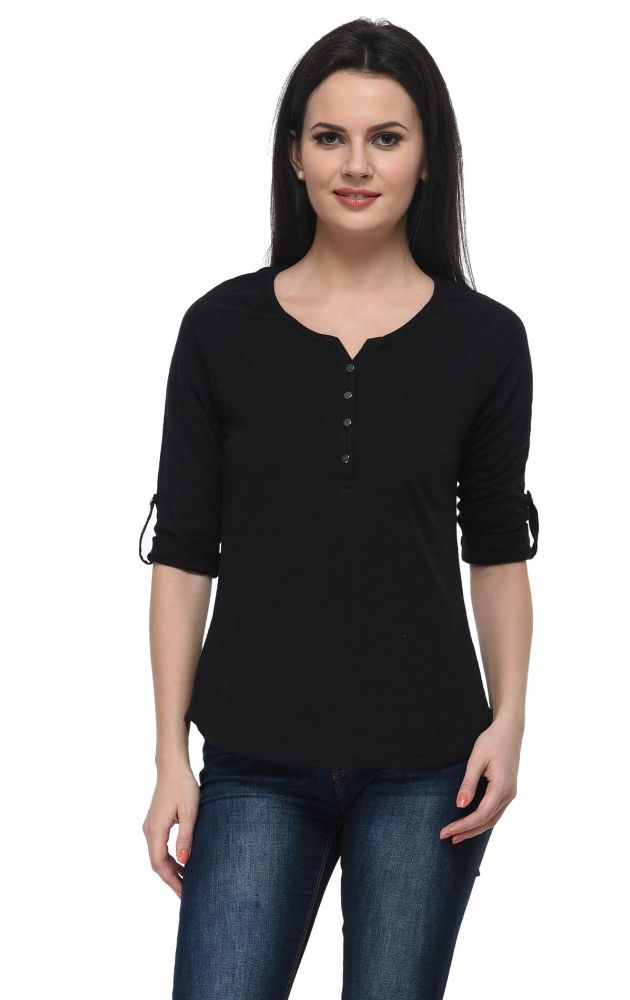Frenchtrendz Cotton Slub Black Raglan 3/4 Sleeve Top