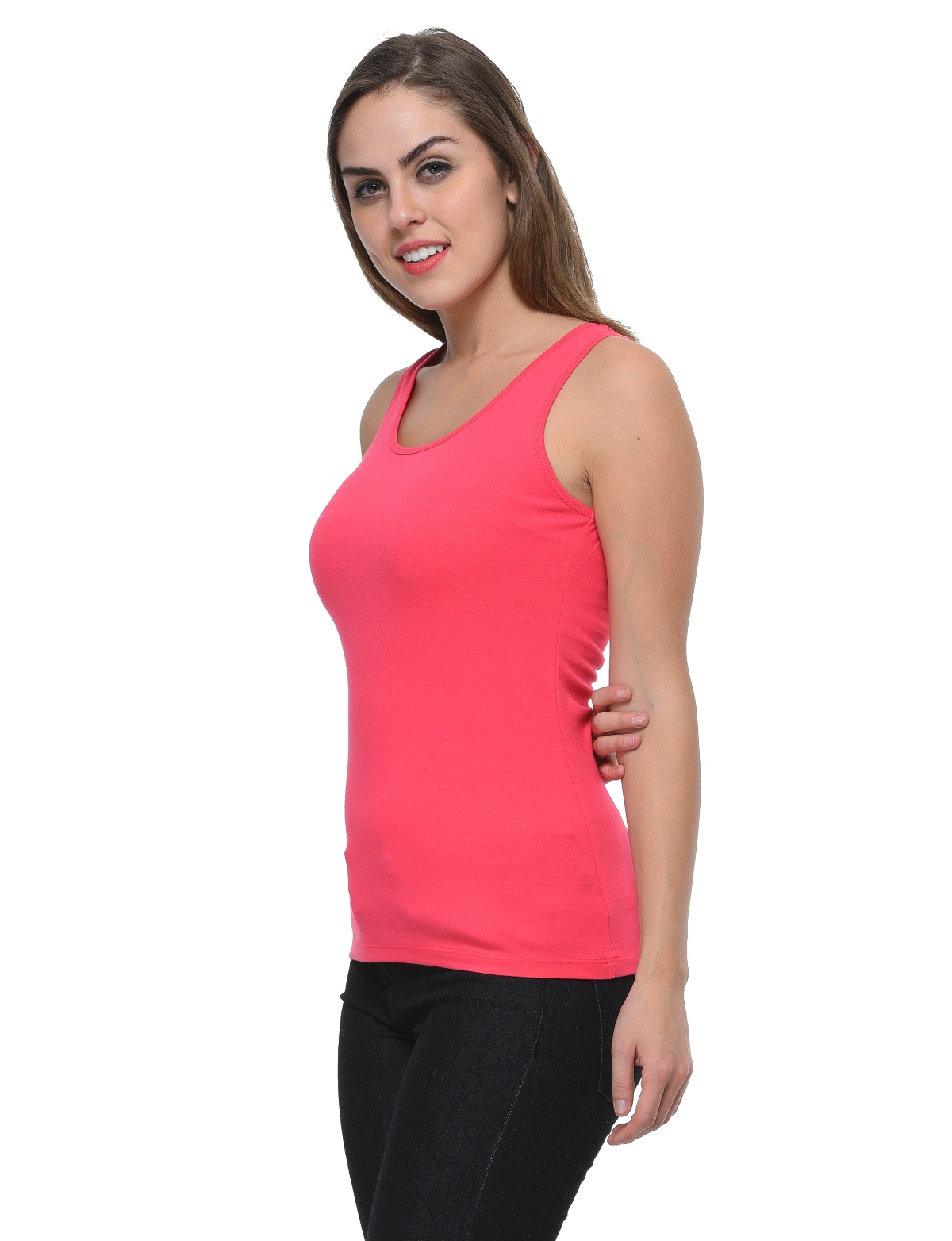 Frenchtrendz Medium Length Cotton Spandex Dark Pink Tank Tops