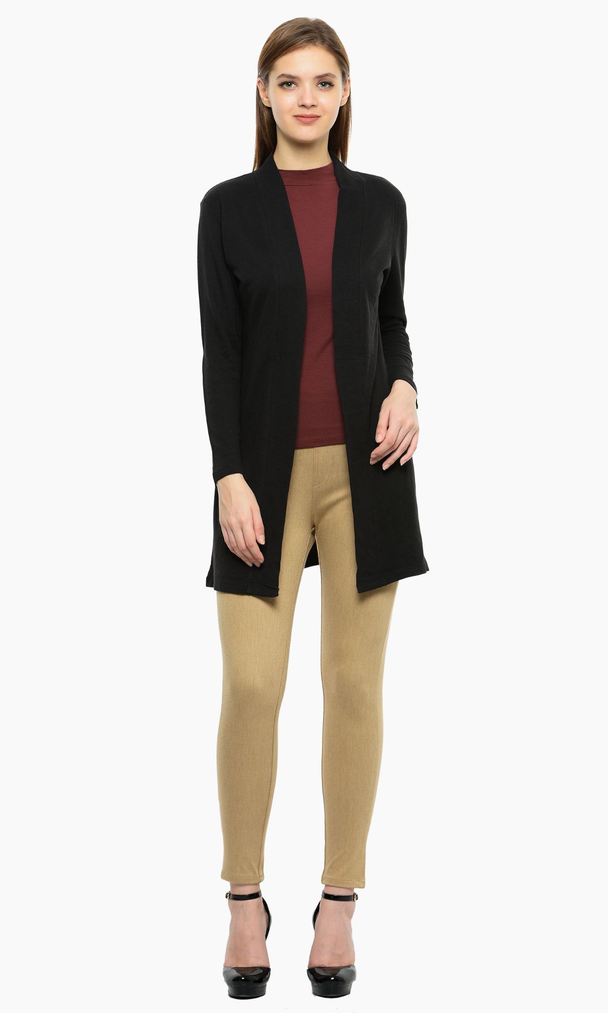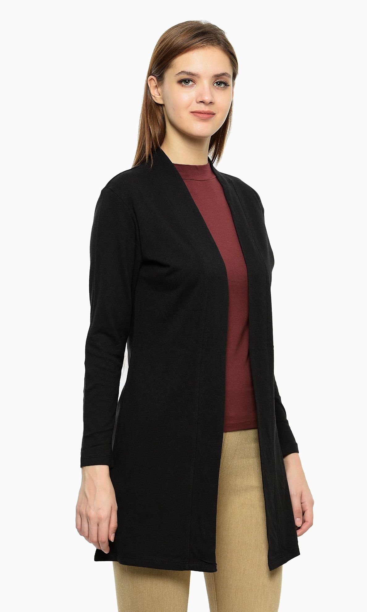 - Design: Features an open front, full sleeves, and long length, making it a versatile layering piece.