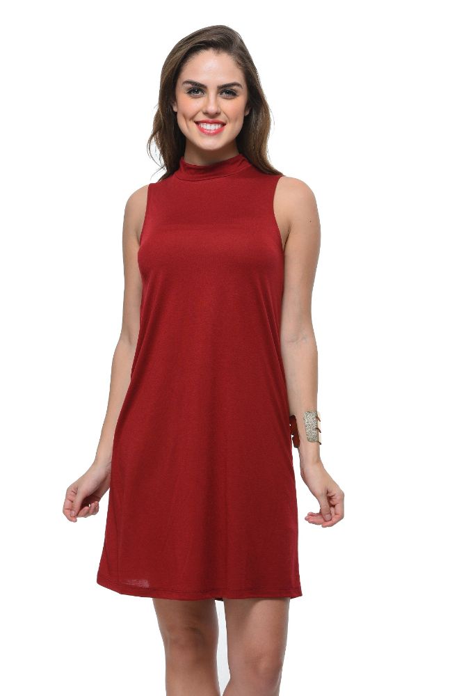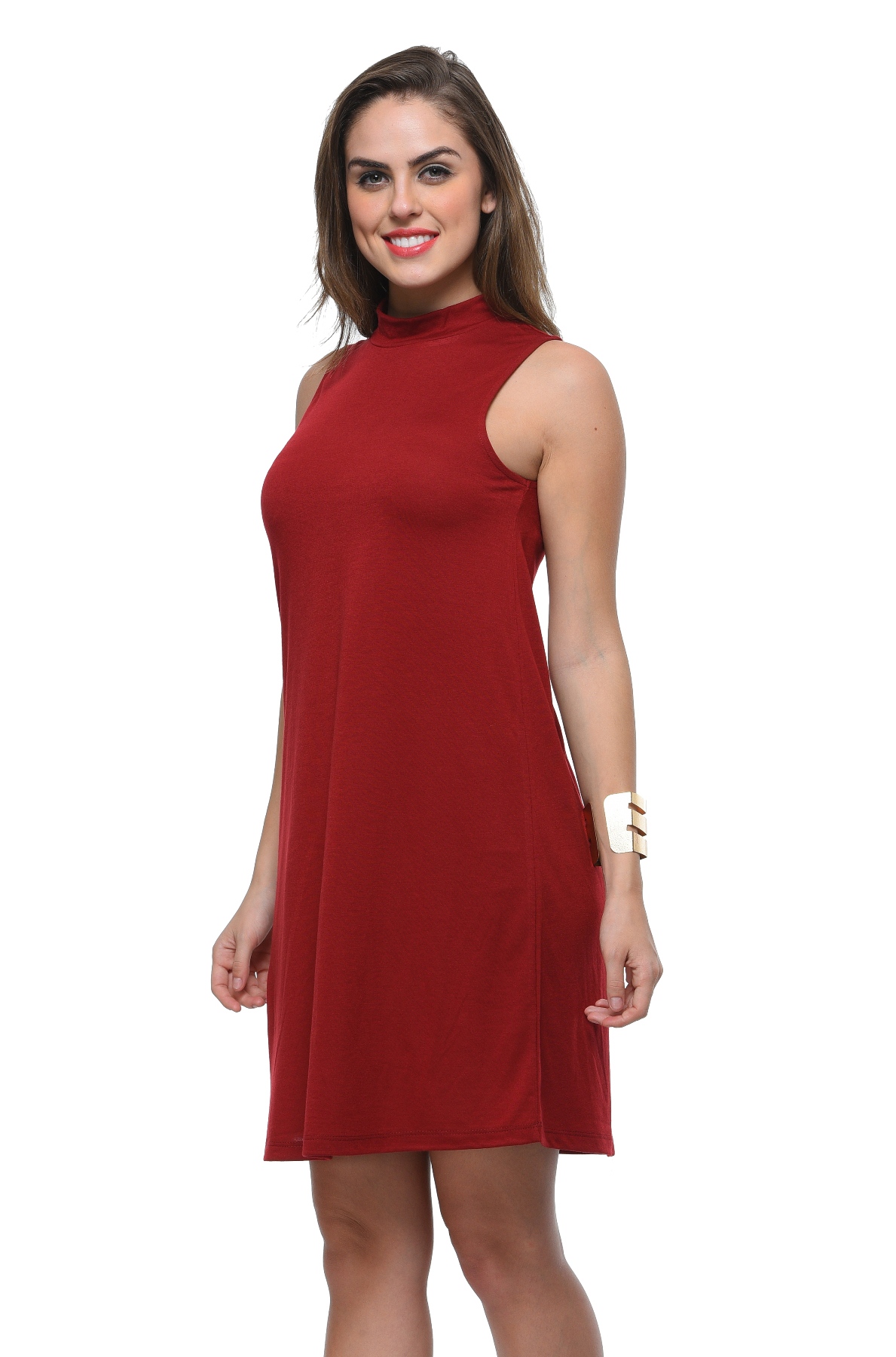 Frenchtrendz Poly Viscose Plum Mock Neck Bodycon Sleeveless Dress