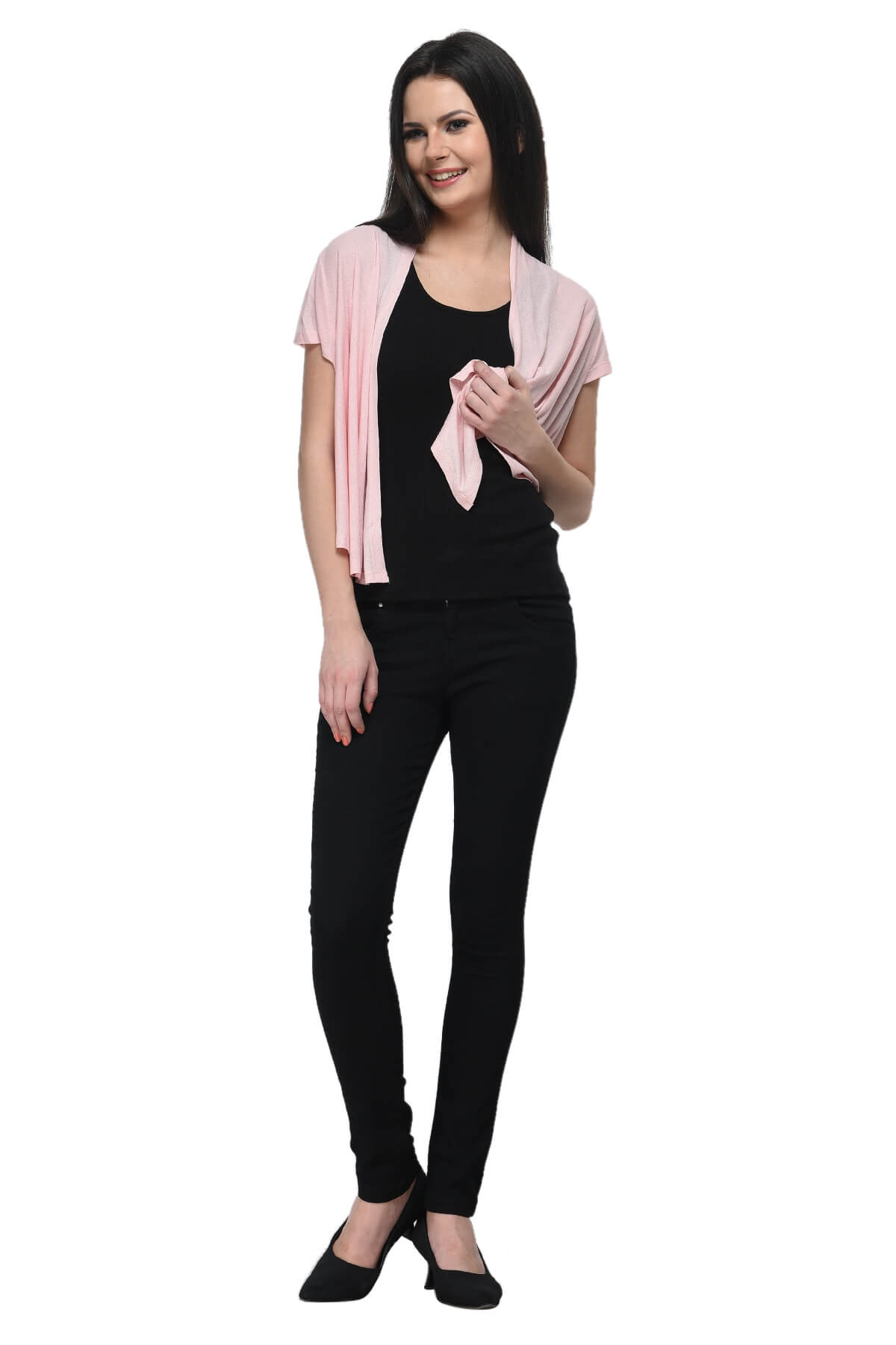Frenchtrendz Viscose Crepe Baby Pink Short Length Shrug