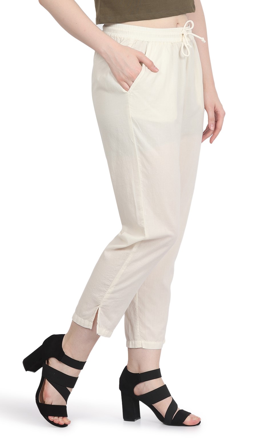 Frenchtrendz Women's Ivory Cotton Pant Elastic Closure With Drawstring