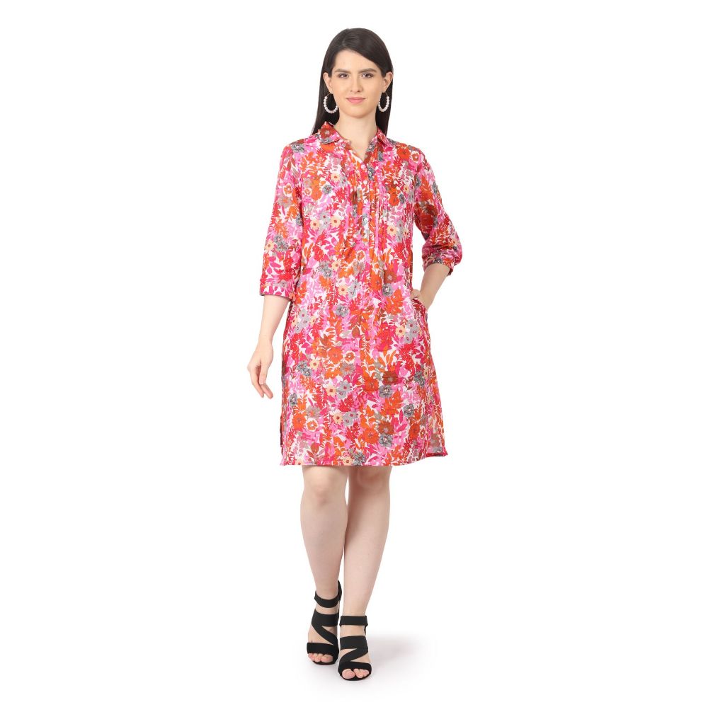 Frenchtrendz Womens Red Printed Pintuck Dress